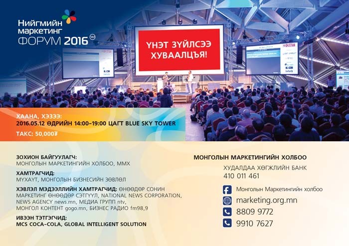 Маркетингийн Холбооноос “Нийгмийн Маркетингийн Форум 2016” зохион байгуулна